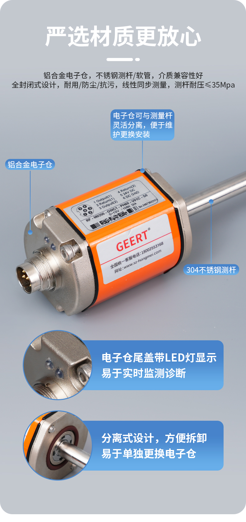 RFRD分體式柔性磁致伸縮位移傳感器